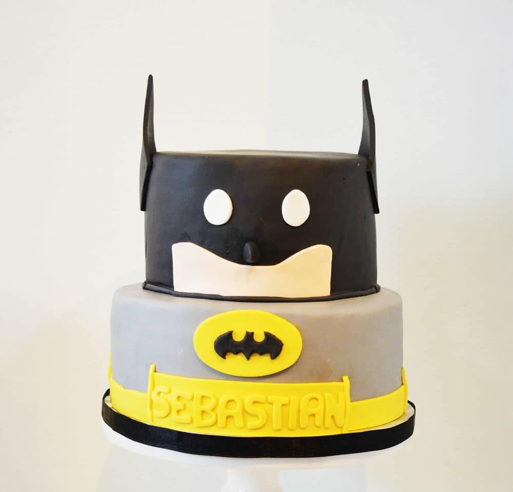 Om de taart helemaal in Batman-stijl af te werken, maken we gebruik van zwarte en gele fondant, samen met het iconische Batman-symbool, een stoer Batman-masker en naamplaatjes in geel voor de finishing touch. Alle details zijn met hand gemaakt wat zorg voor eigen design van de taart.
