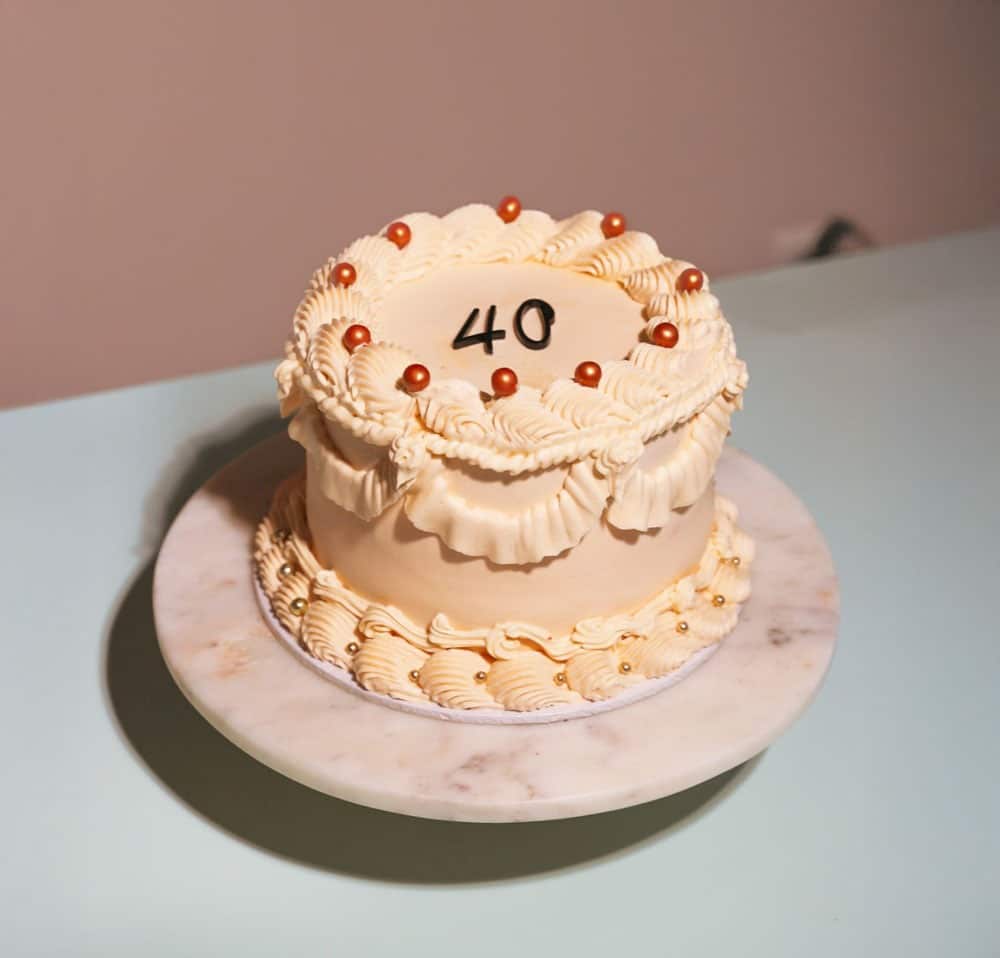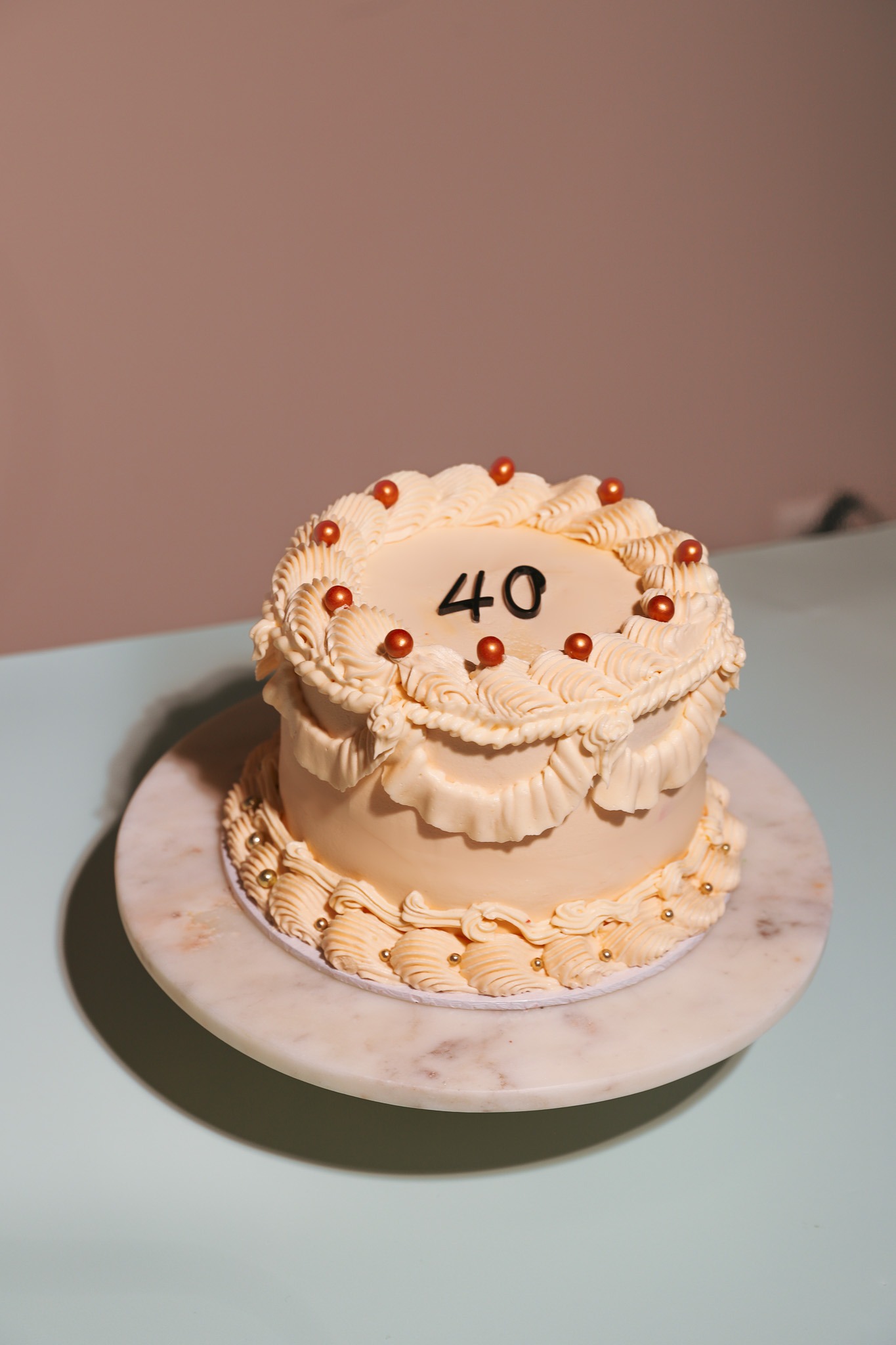 Vier een onvergetelijke 40e verjaardag met onze 40 Jaar Taart, een luxe vintage style creatie die speciaal is ontworpen voor vrouwen met een passie voor het goede leven. Deze taart straalt elegantie én moderniteit uit, dankzij een chic en eigentijds design in zachte blush tinten met een subtiele gouden touch. De buitenkant is volledig gemaakt van botercrème in Lambeth-stijl, wat zorgt voor een rijkelijk versierde en verfijnde uitstraling.