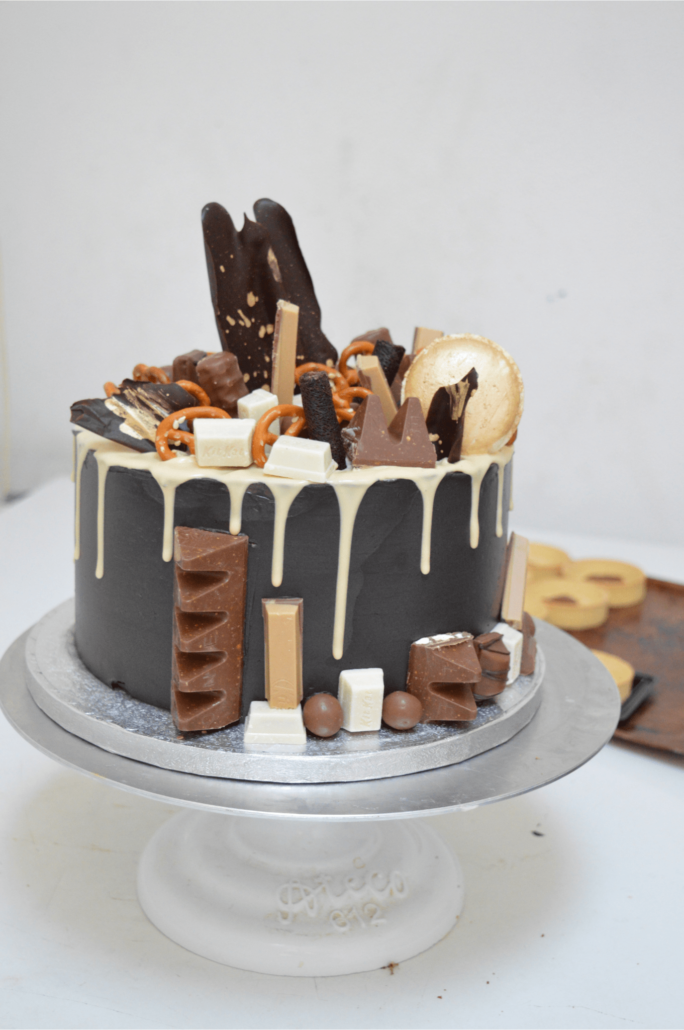 Geniet van de heerlijke chocolade en snoep taart van Perfect Pastry – een symfonie van rijke chocolade en bomvol chocolade snoepjes.