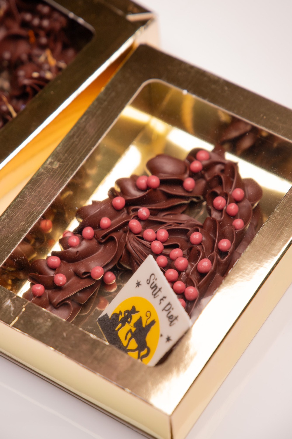 Onze chocoladeletters zijn verkrijgbaar in een mooie formaat, waarbij elke letter ongeveer 135 gram weegt. Ze worden verpakt in een luxe gouden doos, compleet met een mooie boodschap van Sint en Piet, waardoor ze perfect zijn om cadeau te geven.
