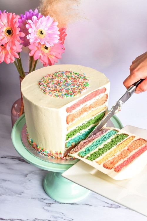 Rainbouw lagen taart is super hippe taart voor elke birthday party.