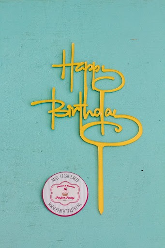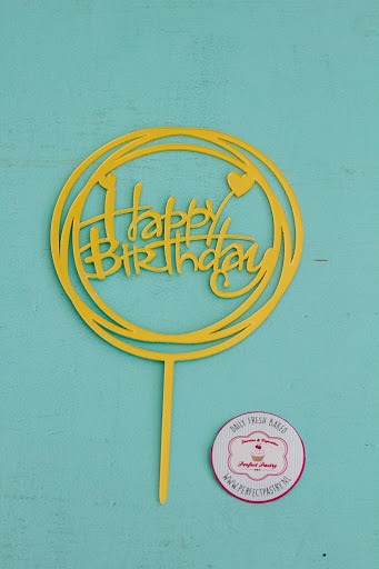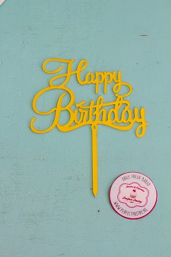 In een verpakking zit 1 Taarttopper “Happy Birthday” Goud