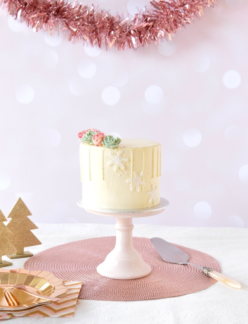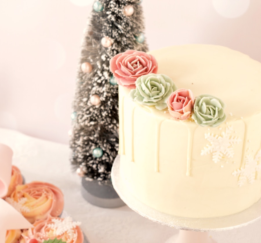 Deze heerlijke witte kerstaart zorgt voor die oh zo gewenste witte feestdagen. Met of zonder sneeuw, met onze witte kersttaart maakt het niet meer uit. De witte kersttaart is een Kerst drip cake taarten mooie hand gemaakte room bloemen in pastel kleuren op de top van de taart.